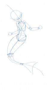 2. Ora date corpo alla sirena, creando il volume delle braccia e unendo la testa al tronco. Aggiungete la coda.